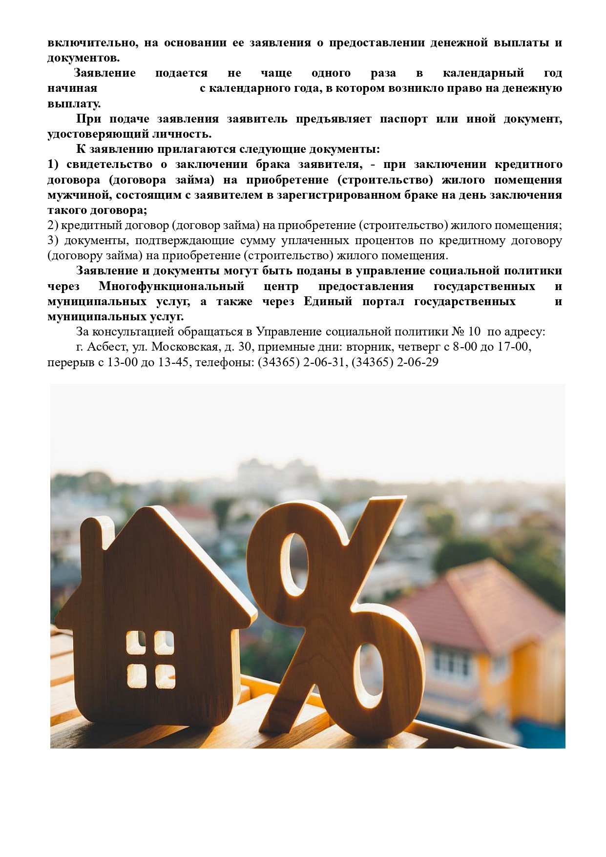 Денежная выплата на уплату процентов по кредиту или займу на приобретение (строительство) жилого помещения